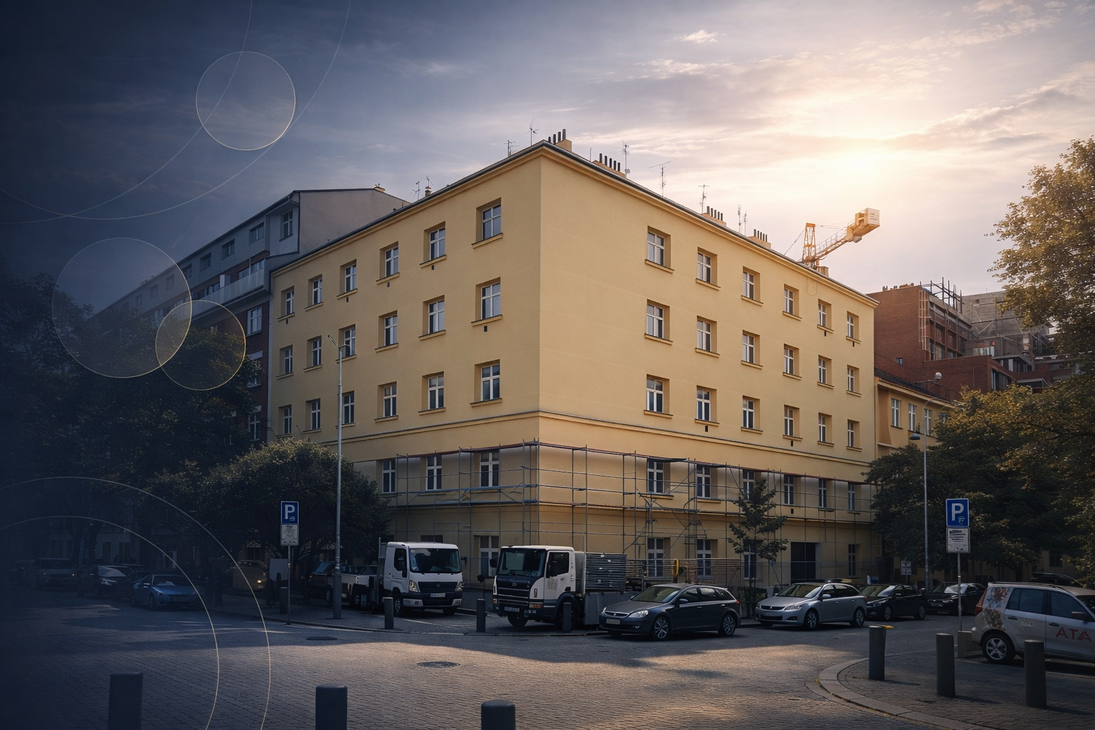 Vyřízení dotace NZÚ pro bytový dům. Zateplením fasády, stropu suterénu a stropu nejvyššího podlaží došlo ke snížení neobnovitelné primární energie o 40 % a objekt byl zatřízen do energetické třídy C - úsporná budova.